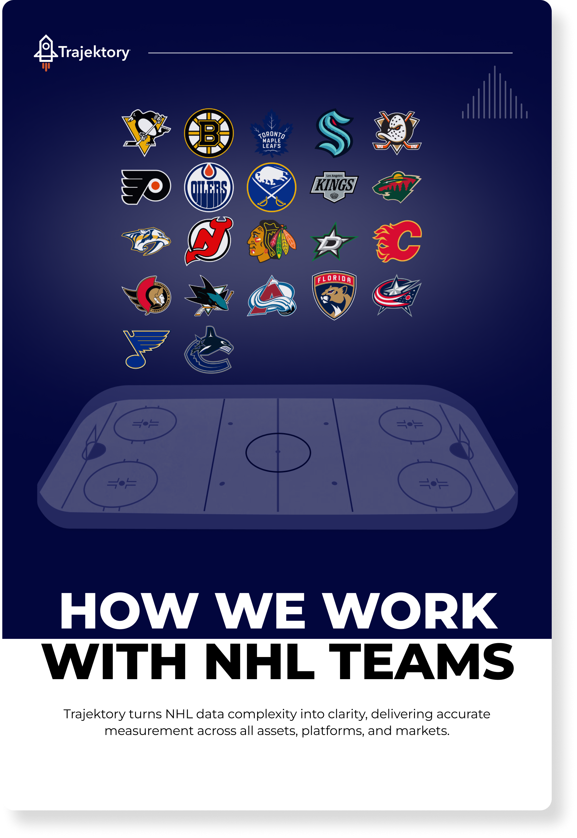 This report breaks down how Trajektory supports NHL teams in navigating the unique challenges of sponsorship valuation. From tracking Canadian viewership and quantifying DED exposure to pioneering in-venue valuation and cross-league benchmarking, the report shows how NHL teams use Trajektory to uncover hidden value, streamline reporting, and prove ROI. Built by industry insiders, Trajektory gives teams the real-time insights they need to make smarter decisions and tell stronger, data-backed stories to partners.